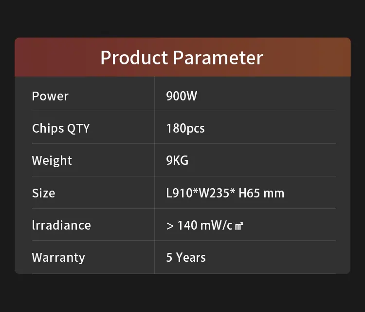 | LED Qty | 180 pcs × 5W (dual chip) |