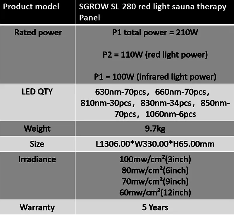 SL280 Sauna Light Led Therapy Devices Full Body LED Panel OEM Supplier
