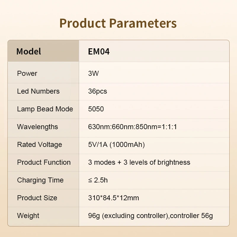 Backed by reliable manufacturing, flexible MOQs, and comprehensive support, the EM04 offers a turnkey product solution. Let us help you launch a competitive, high-quality light therapy device under your own brand.