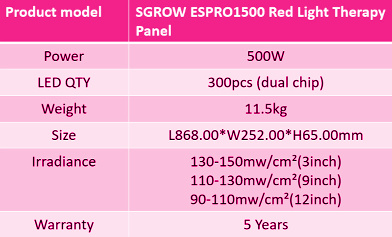 Note: All ESPRO models feature multiple wavelengths for comprehensive red light therapy. The higher LED count models (ESPRO1500 and ESPRO3000) provide greater coverage and higher irradiance suitable for full-body treatments.