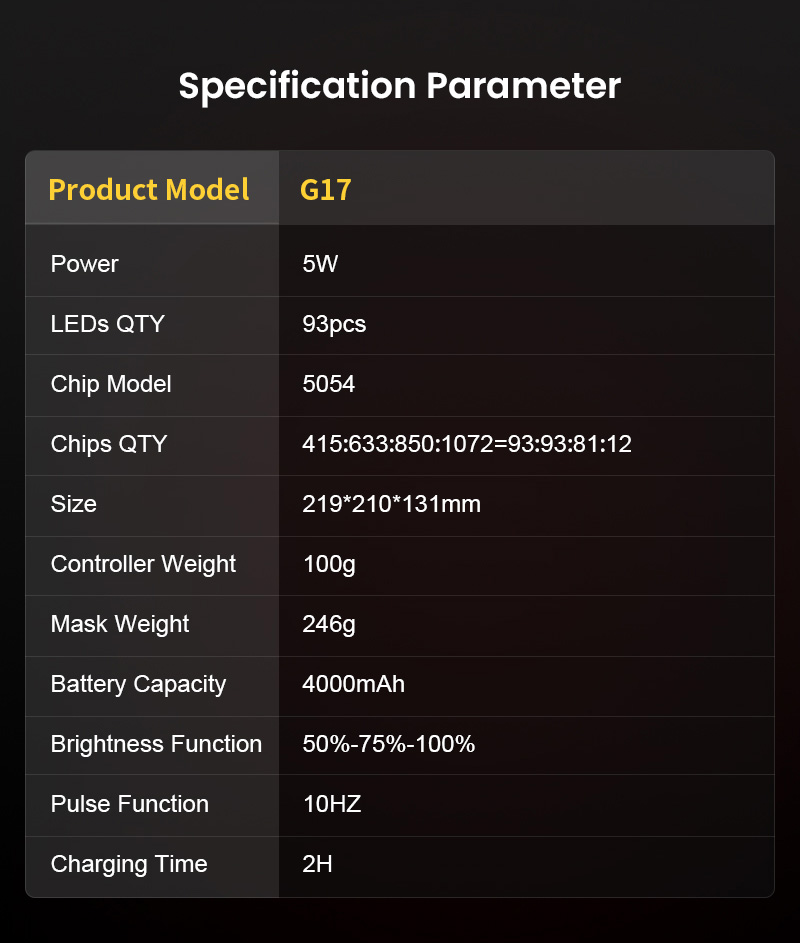 | Silicone Mask Weight | 246g | Rated Voltage | 5V/2A (4000mAh) |