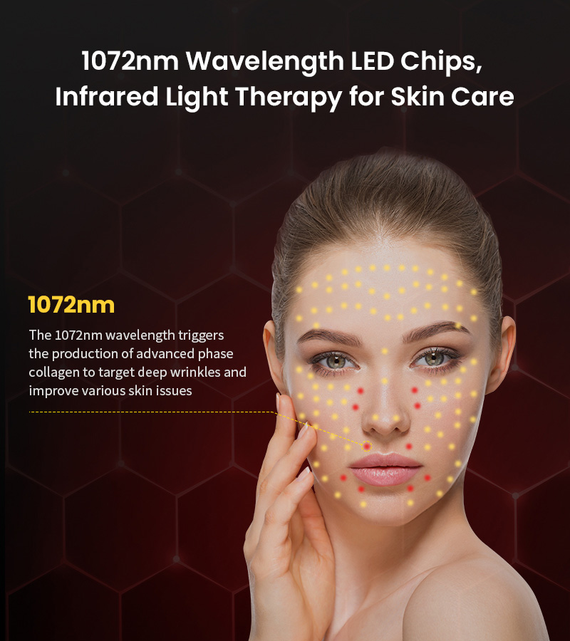 Industry-first 1064nm Long-Wave NIR, paired with 660nm red light and three additional wavelengths, for deeper skin penetration that targets aging from the surface to the deepest layers.