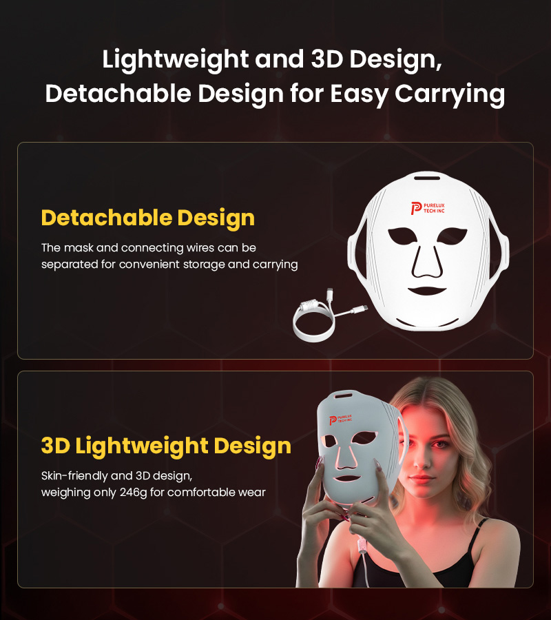 Modular design with a separable mask and connection cable for easy storage and travel convenience. -