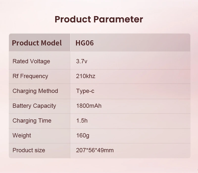 As a professional manufacturer and supplier, we offer the HG06 medical energy laser comb, combining advanced laser technology with 210kHz RF frequency for enhanced hair growth stimulation. This innovative device features Type-C fast charging (1.5h), 1800mAh rechargeable battery, and lightweight 160g ergonomic design (207Ă—56Ă—49mm) for comfortable home use.