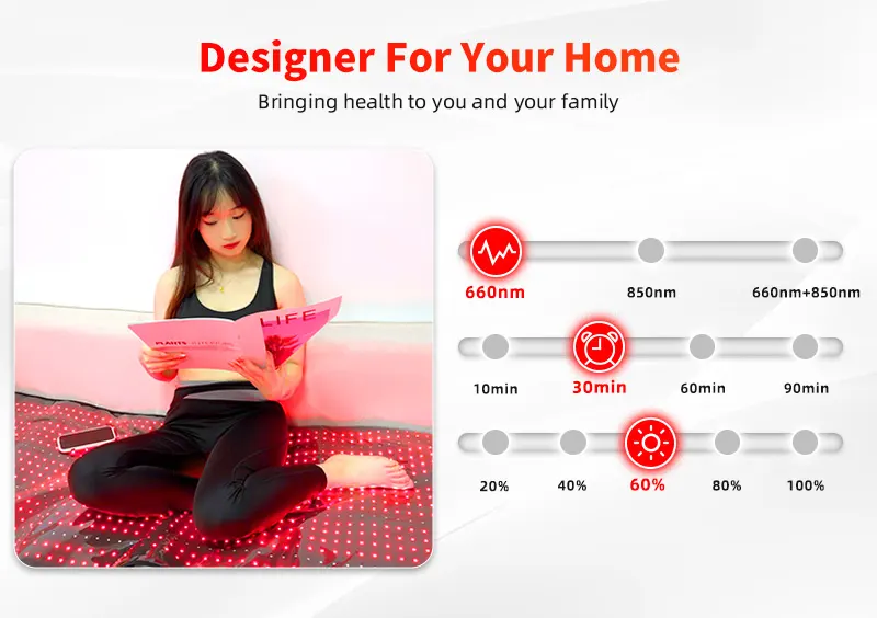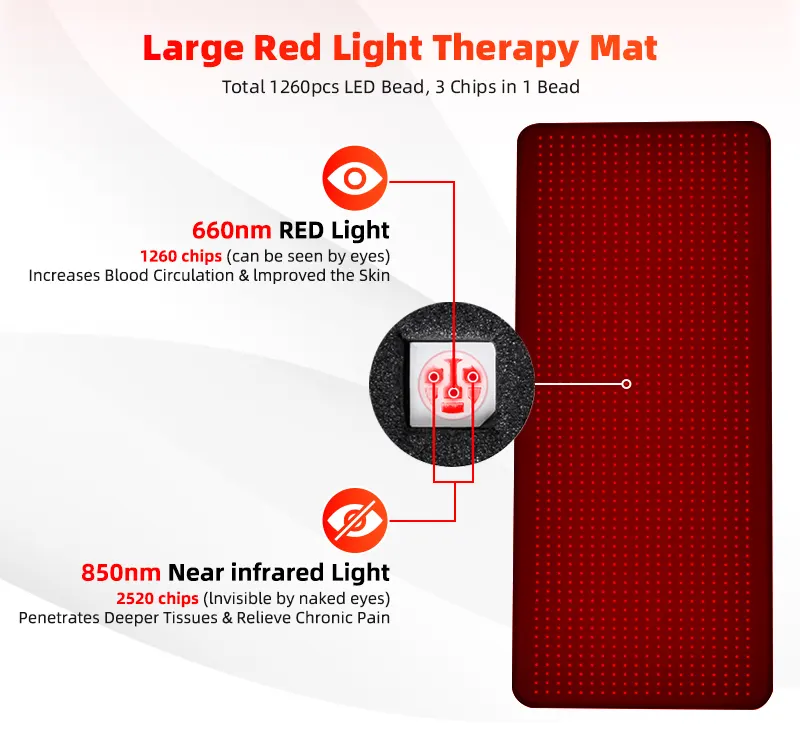 As a professional manufacturer and supplier, we offer the L02 red light therapy blanket mat, designed for full-body phototherapy treatments. This large-format mat (1600Ă—700Ă—10mm) features 1260 LEDs with 3 chips each delivering precise 660:850nm=1:2 wavelength combination.