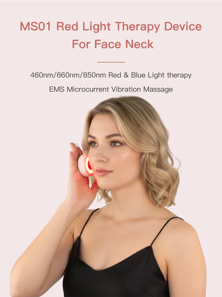 The MS01 Handheld Face Red Light Therapy Device is a compact, professional-grade tool designed to bring the proven benefits of red light therapy directly into your home. Utilizing a combination of 633nm Red Light and 850nm Near-Infrared Light, it penetrates the skin at different depths to rejuvenate and repair skin cells from within.